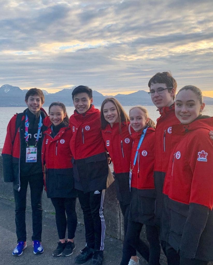 We found out we qualified at the Skate Canada Challenge Event, it was pretty unbelievable for the both of us and we are extremely thankful for the opportunity. From the moment we got to Lausanne the atmosphere was astonishing. There were always people cheering us on when we were walking around the city, and the audience at the rink was incredible. At the Athletes village, there was a cafe in the middle which was the perfect place to meet new people, make memories, socialize, and de-stress from the competition itself.
