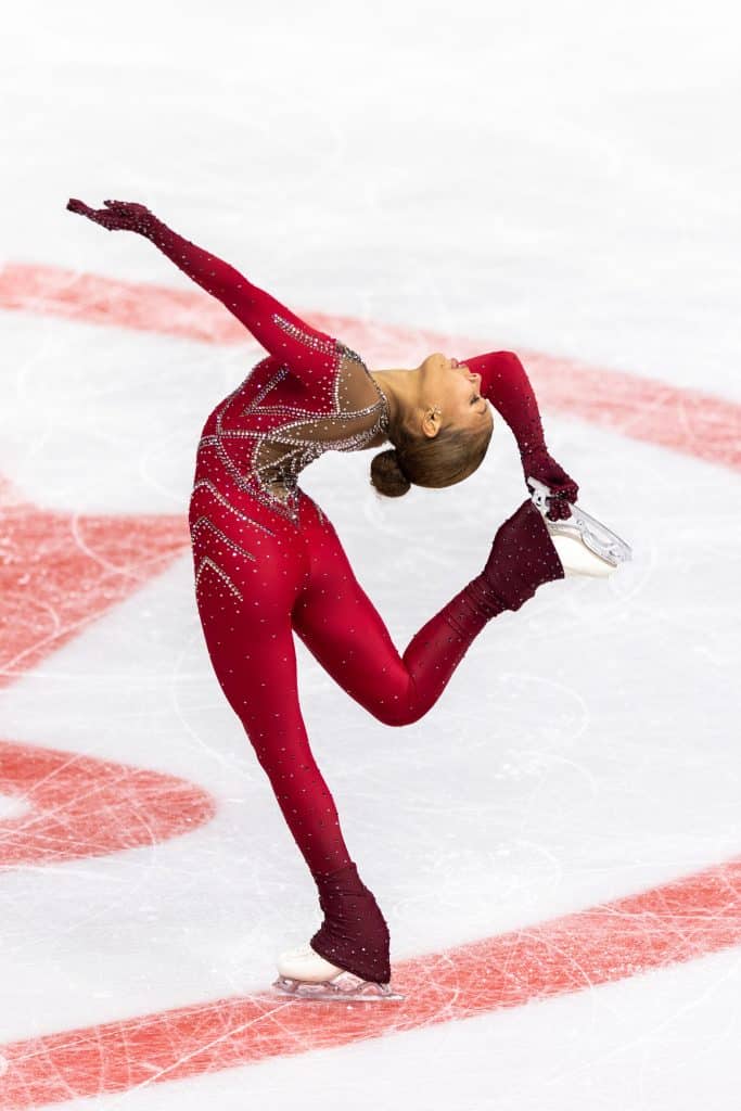 Gabrielle Daleman of Canada gave a strong short program, showing delight at her performance. The former world medalist nailed her trademark 3T-3T in both programs, but wasn’t able to skate clean in the free, with multiple jump errors. Nevertheless, she put out a strong ending to her skate with a solid step sequence and spin. Fellow Canadian Madeline Schizas similarly had a great short program which put her in first place, skating with intensity to ‘Black Swan’ and coming into the competition with the experience of being both a national champion and Olympian. She performed to the timeless music of the West Side Story soundtrack for her free skate, which fits her well. However, despite opening with a strong 3Lz-3T combination, she was unable to retain this throughout, with multiple errors in her following jumping passes. It will be exciting to watch how she grows into this program; we can see the step sequence to Rachel Zegler’s rendition of ‘I Feel Pretty’ become a memorable moment, and a place in the program where she can match the playful and lighthearted tone of the music.